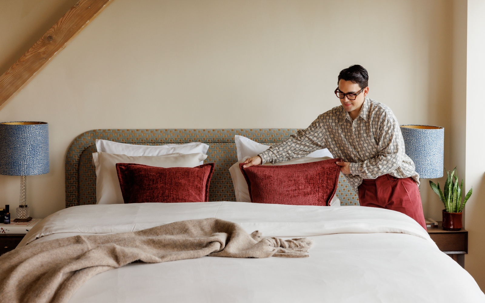 To bring that Soho spirit to life, we partnered with US-born influencer and tastemaker Joey Jaq. Known for his love of design, travel and creative city living, Joey perfectly embodies the Soho mindset: expressive, confident and always stylish without trying too hard. Together we explored colours, textures and shapes that reflect the atmosphere of the neighbourhood itself - warm tones, rich fabrics and timeless forms that feel collected rather than decorated. The result is a bed that feels personal, creative and unmistakably cool.