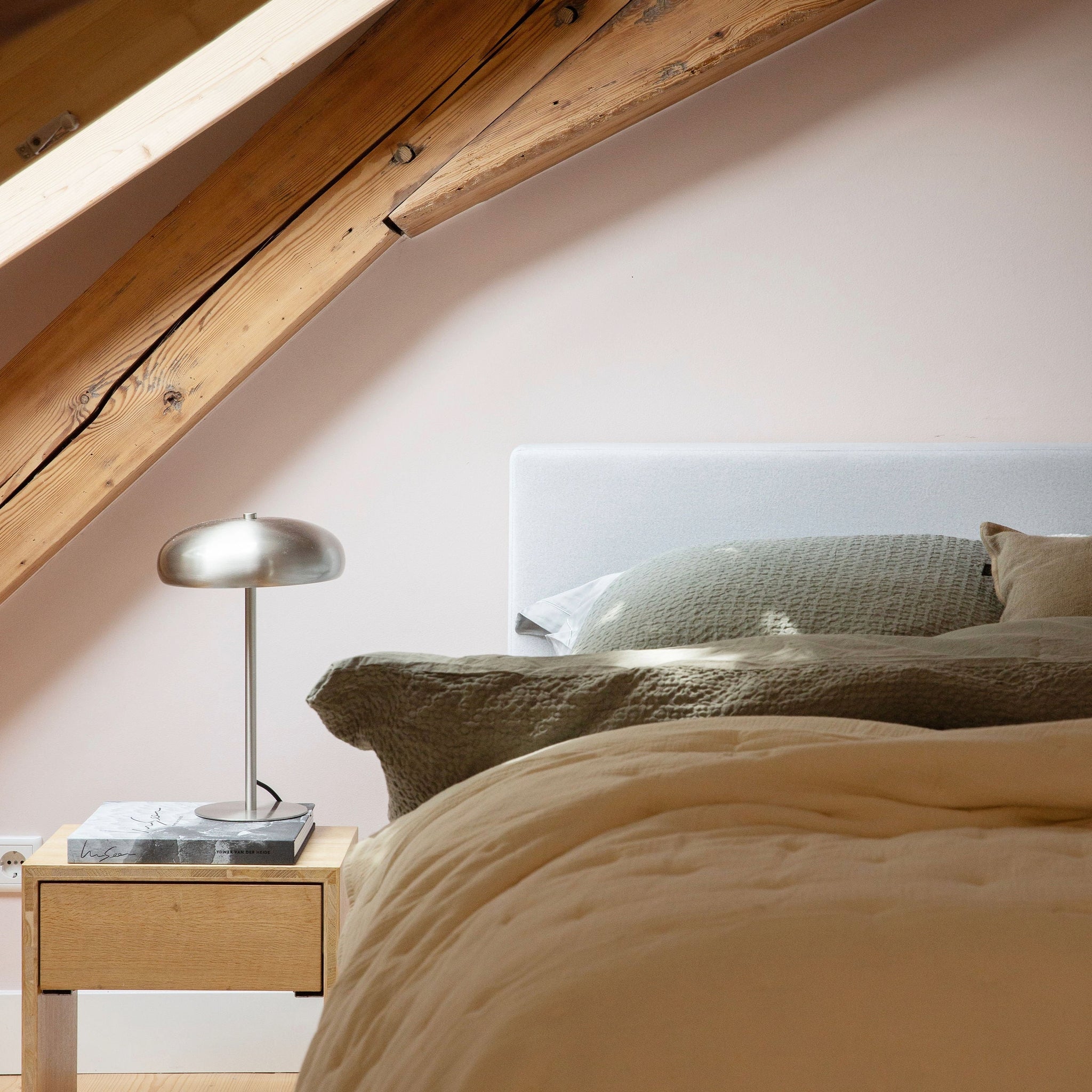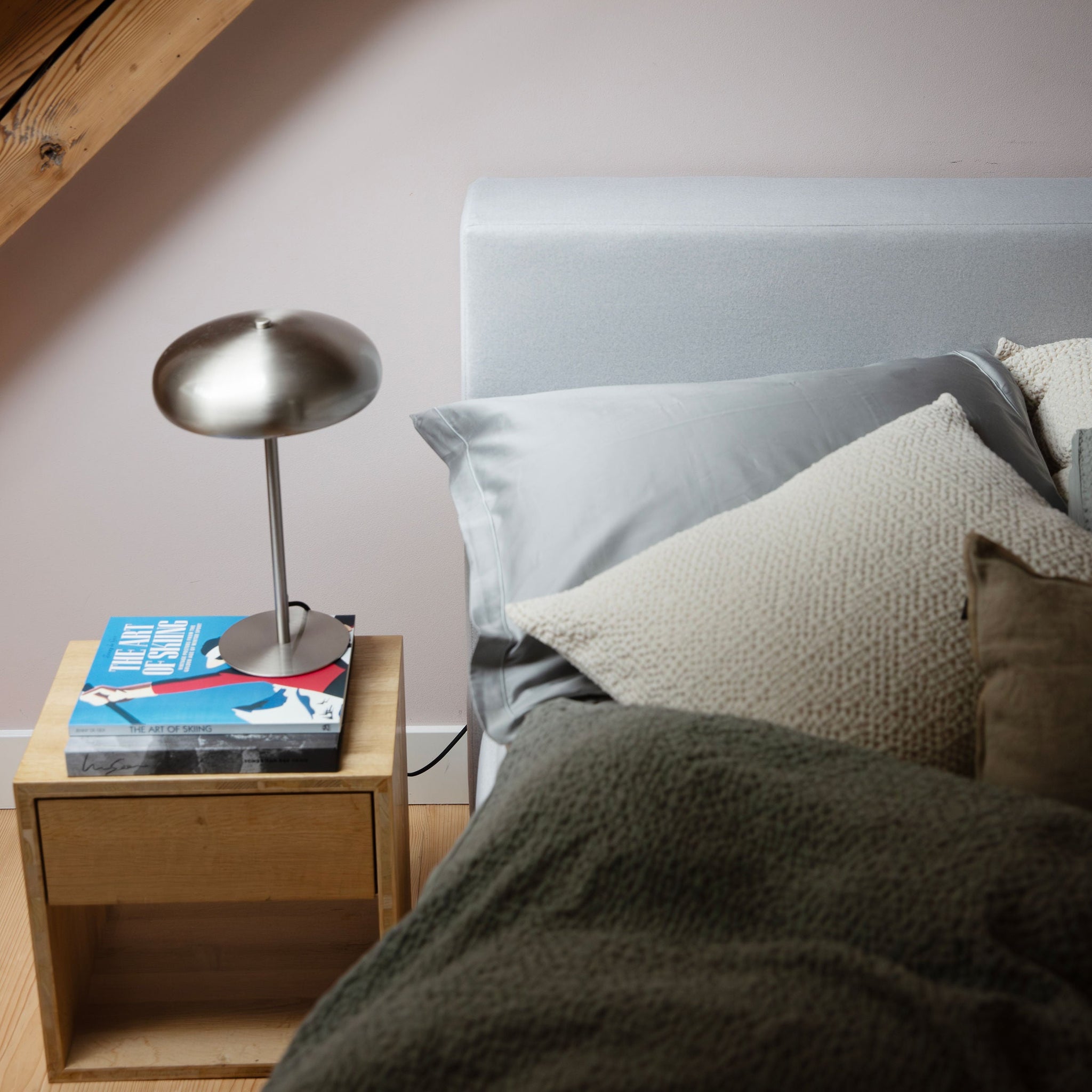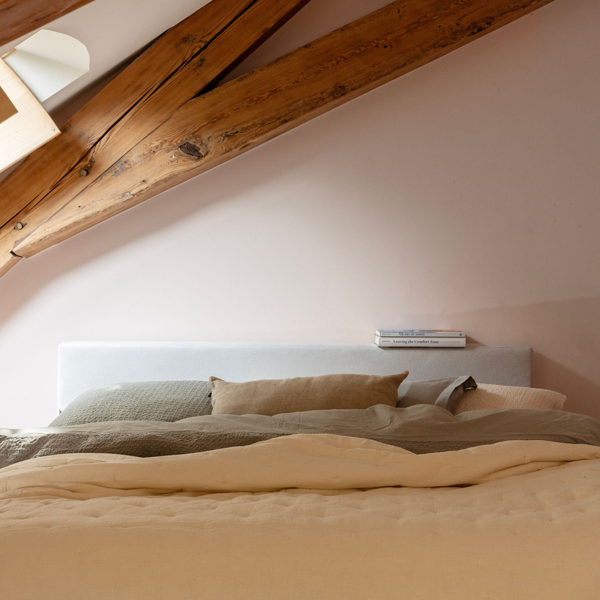 The Alpines are every bit as comfortable as they are stylish. Inspired by the serene beauty of the mountains, our Alpines feature a cozy wool-inspired fabric, complemented by oak legs and our signature slightly lower cube headboard. Our bespoke favourite combination.