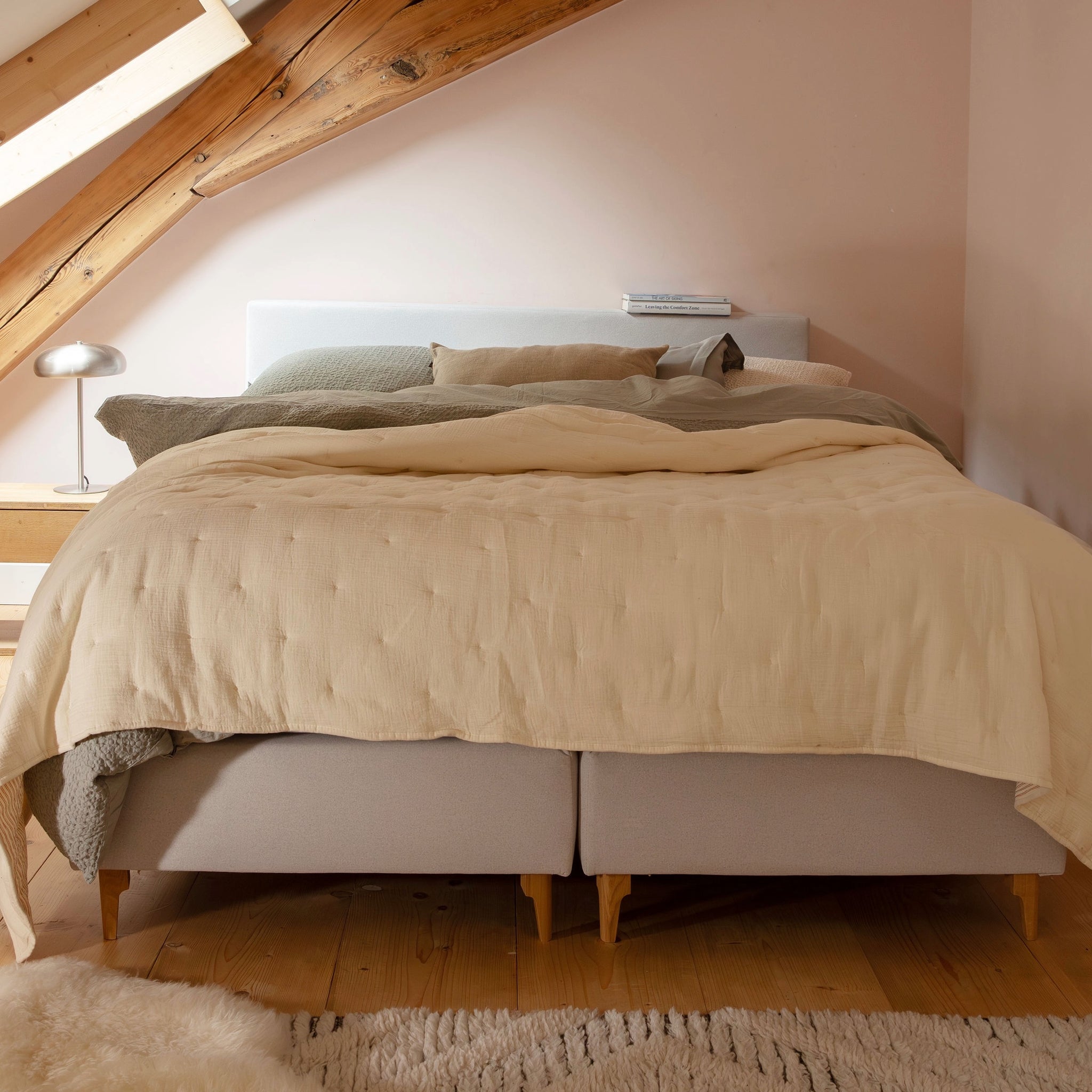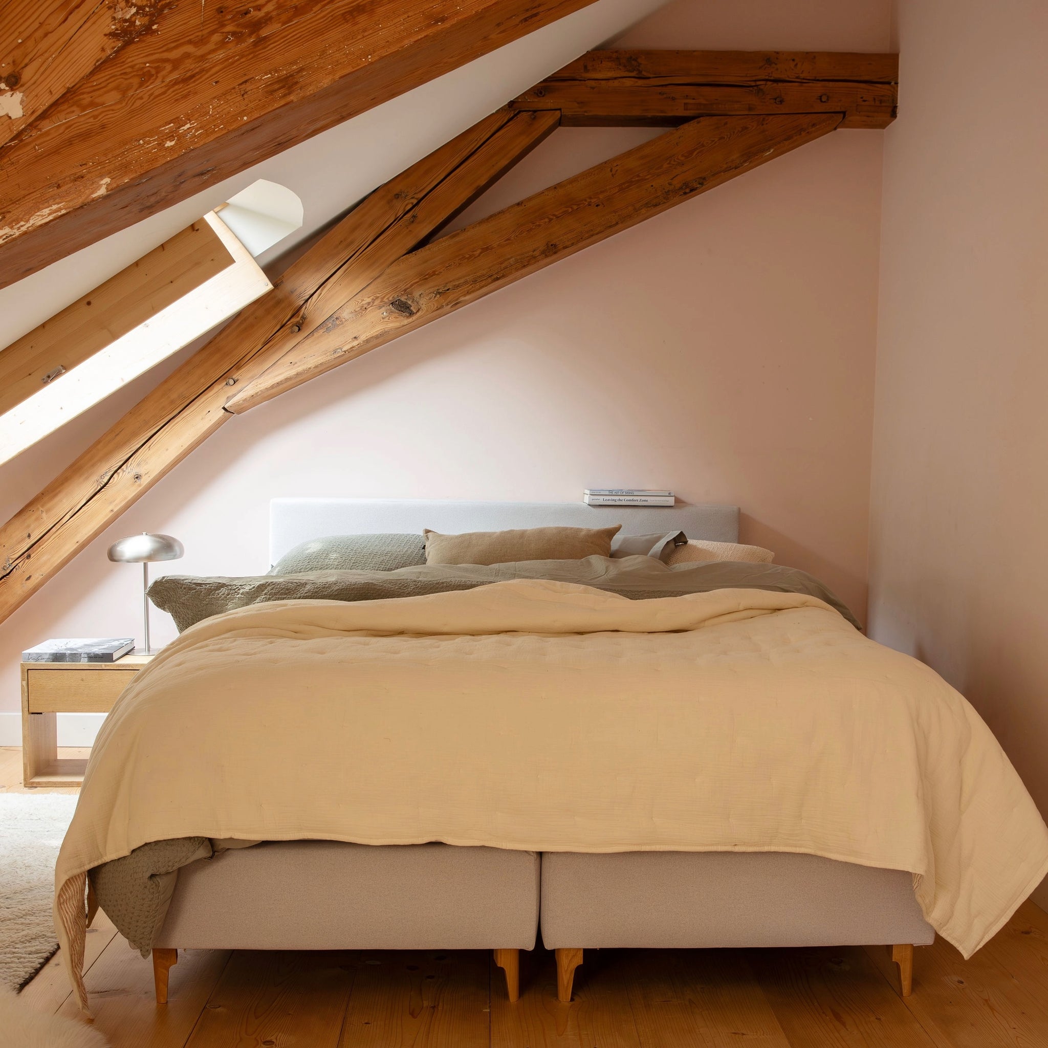 Imagine sinking into plush layers after a day of exploring snow-kissed peaks or simply enjoying a quiet moment with a book and a steaming mug. Our Alpine boxspring beds offer a sanctuary. They bring the serene spirit of the mountains into your home, promising nights of restful sleep and mornings filled with revitalized energy. Hand-crafted in the Netherlands with a strong commitment to sustainability, we emphasize local resources to ensure each bed not only delivers unparalleled comfort but also fosters a greener future. Explore our Specifications and uncover the ideal fusion of Alpine allure and contemporary luxury for your bedroom sanctuary.