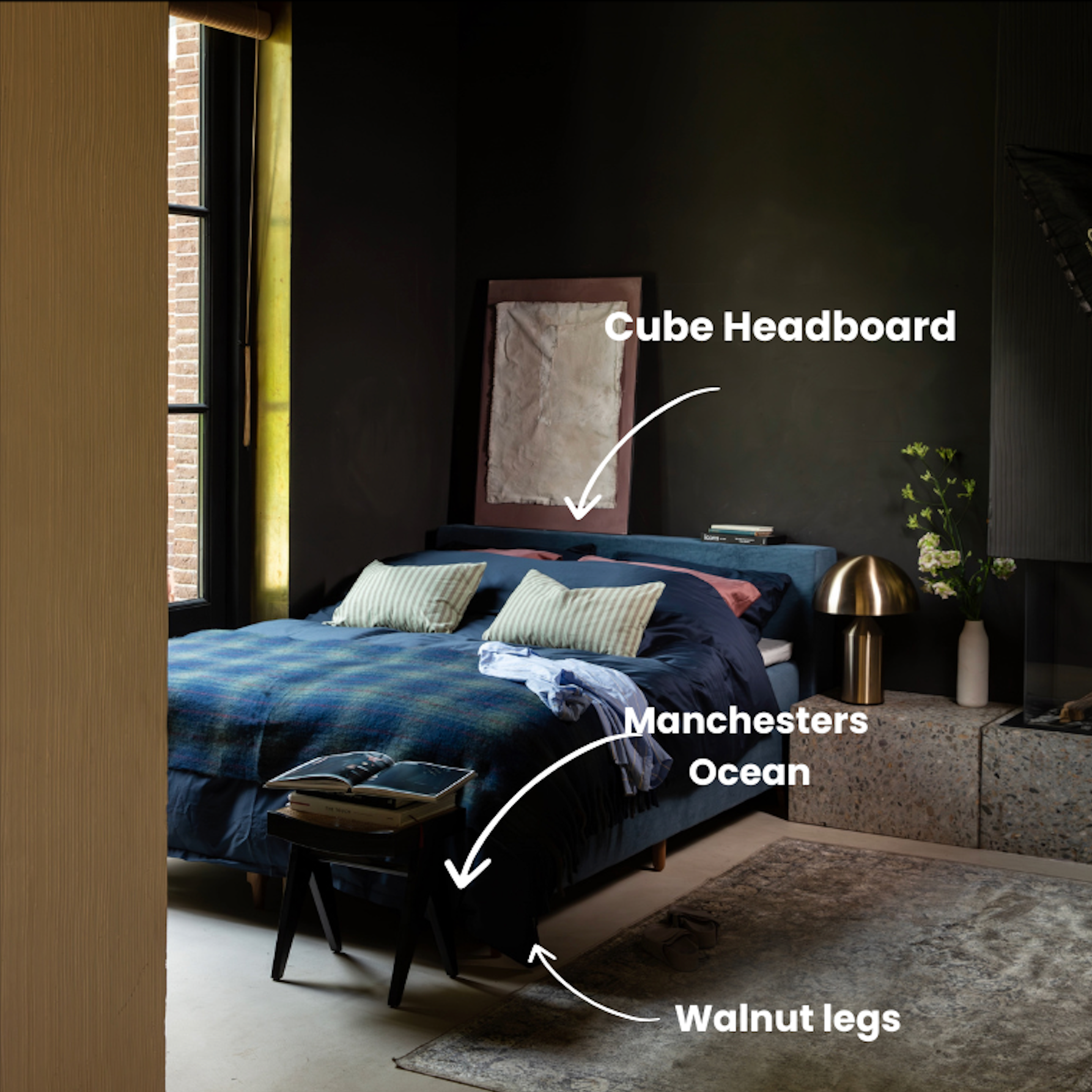 Fabric heritage meets sophistication with a dash of rock & roll - let us introduce you to our stunning ribbed flannel beds. The Manchesters come standard with sleek walnut legs and our signature cube headboard. Whether you're tucking in for a cozy night or daydreaming the weekend away, the Manchesters promise to deliver comfort and style in perfect harmony.