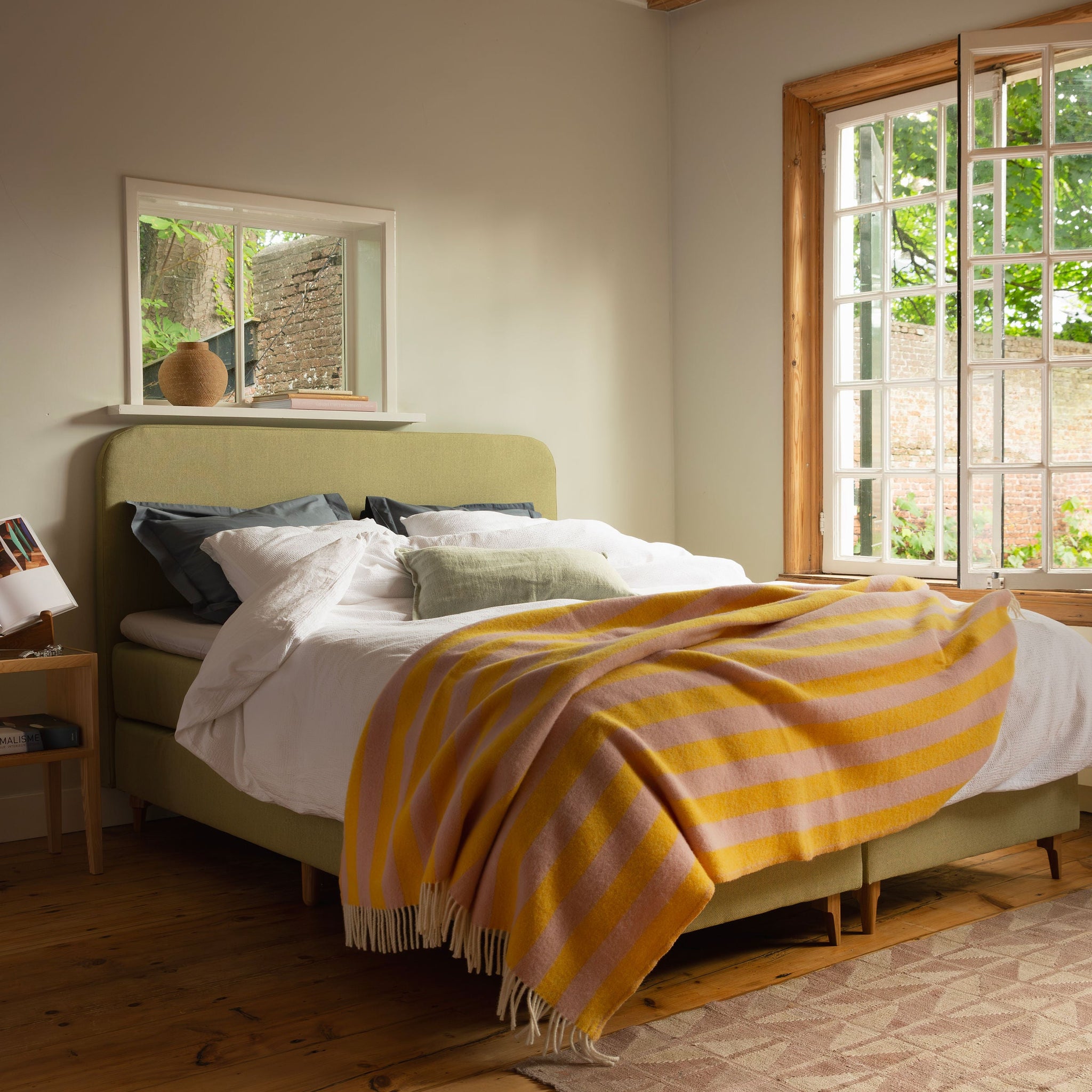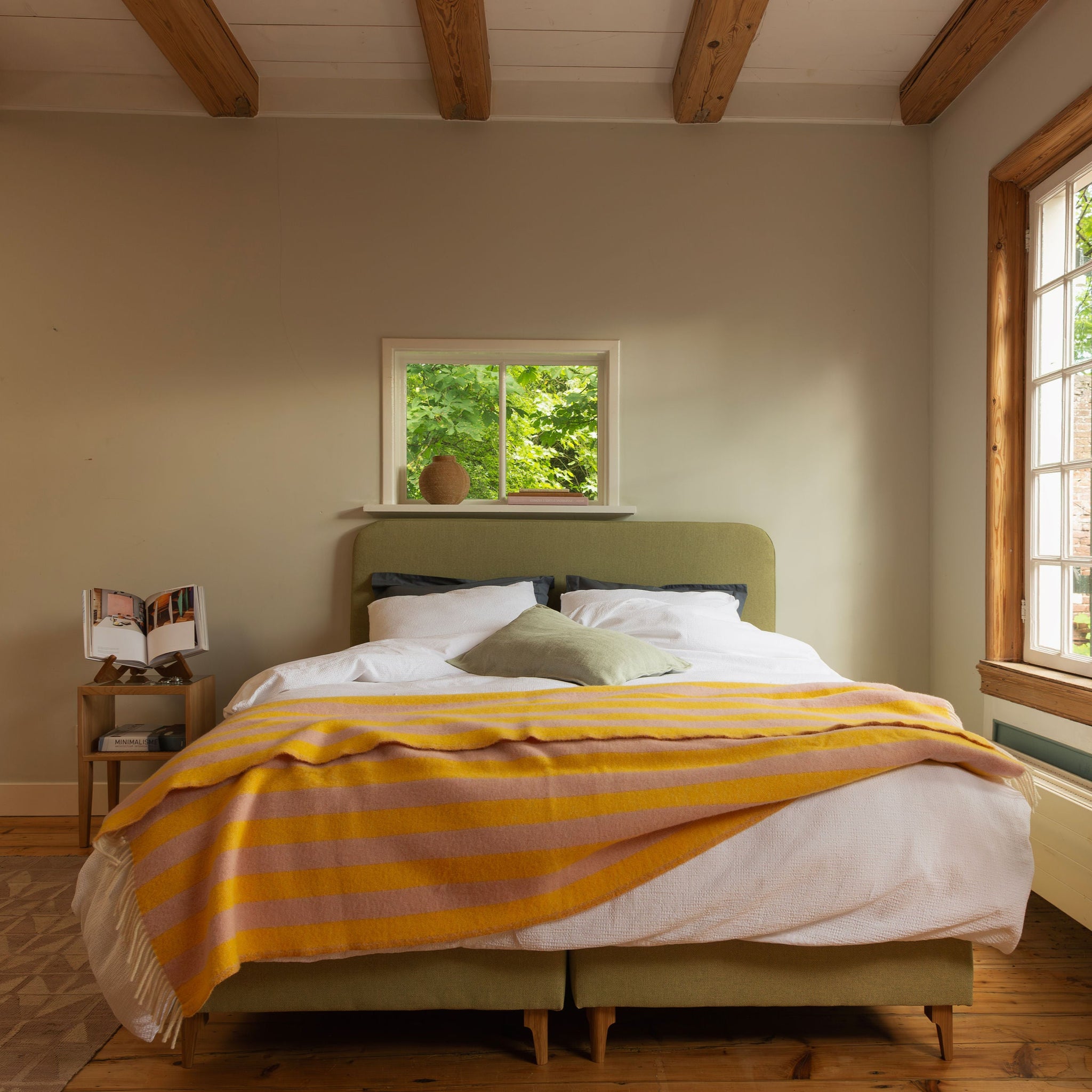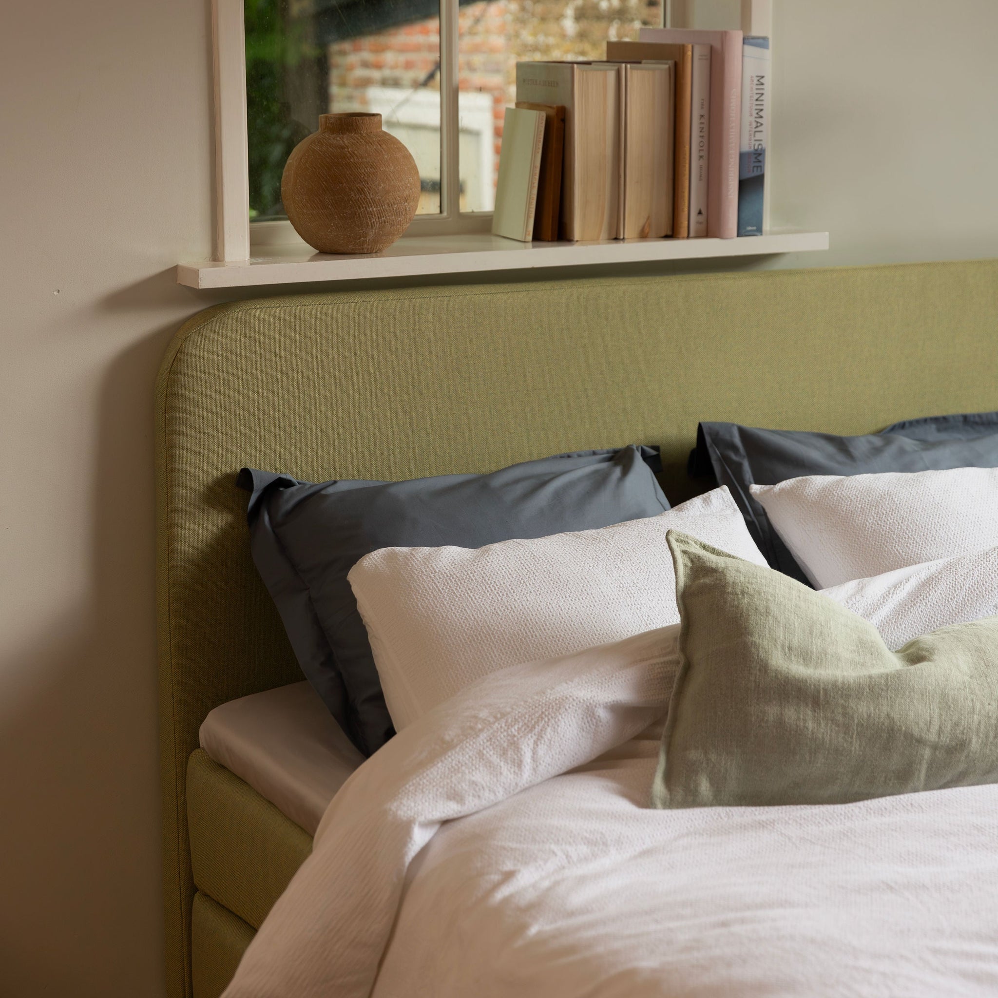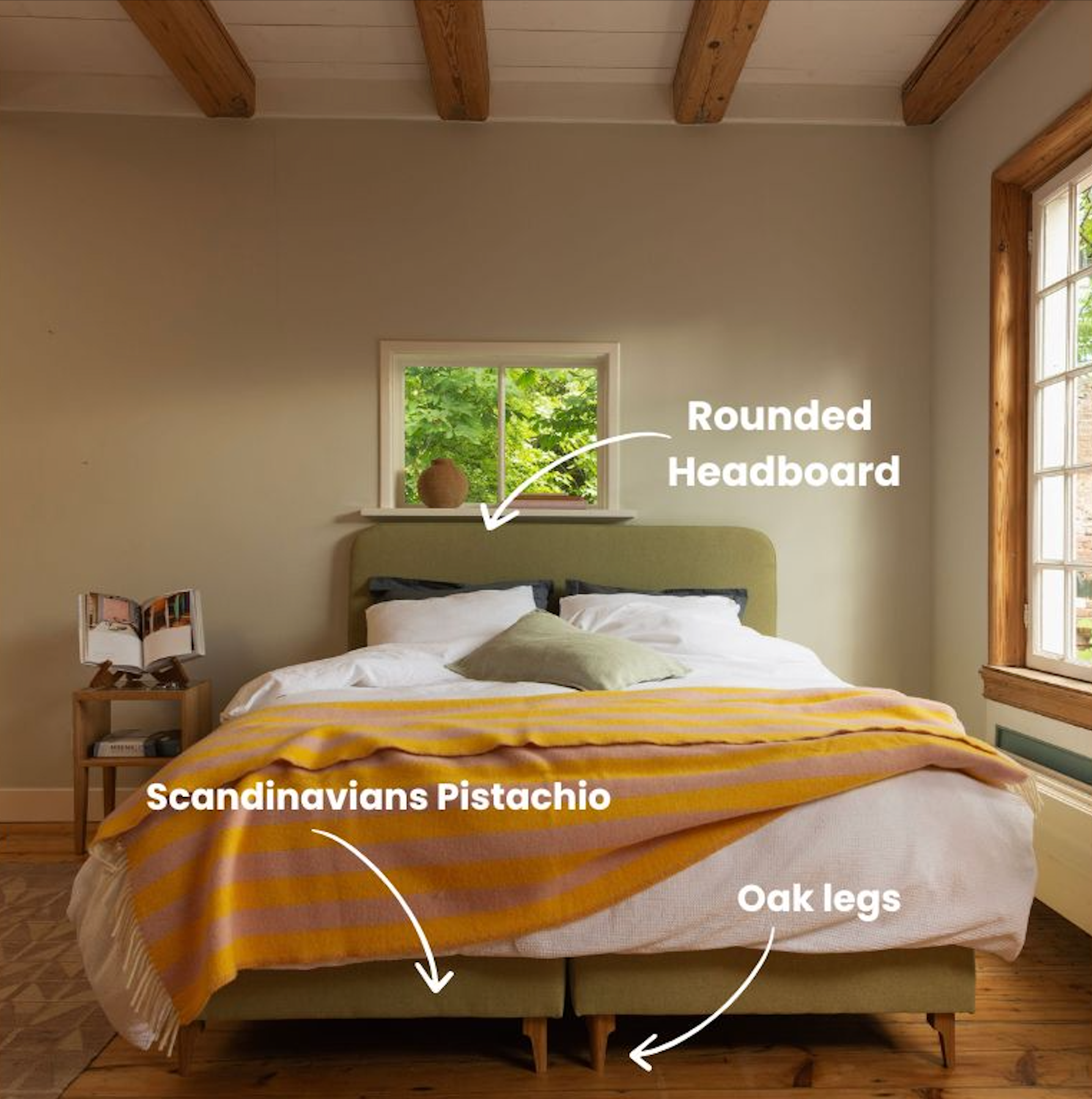 Embracing Scandinavia’s renowned sense of minimalism and functionality, each bed is adorned with vibrant textiles that reflect the Nordic love for nature and color. Crafted with oak legs that exude warmth and durability, and featuring a rounded headboard for added comfort and style, our beds invite you to embrace the essence of Hygge – a Danish concept that celebrates coziness and contentment in everyday moments. Hand-built in the Netherlands with a commitment to sustainability, we prioritize local resources to ensure every bed not only offers unparalleled comfort but also contributes to a greener future. Head over to Specifications and discover the perfect blend of Scandinavian charm and modern luxury for your bedroom sanctuary.
